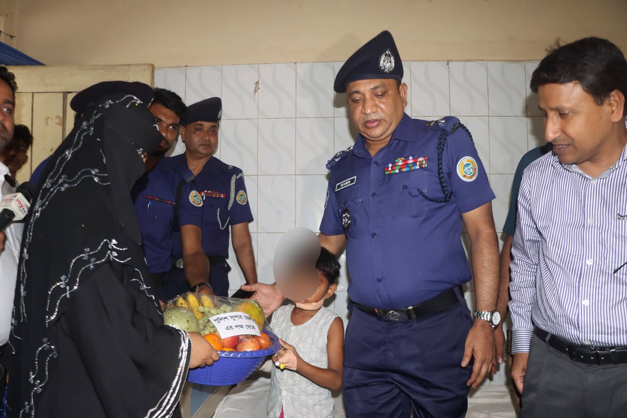 ভোলা সদর উপজেলার শিবপুরে গৃহবধূ হত্যা; আহত শিশুকে হাসপাতালে দেখতে গেলেন পুলিশ সুপার, ভোলা মহোদয়।